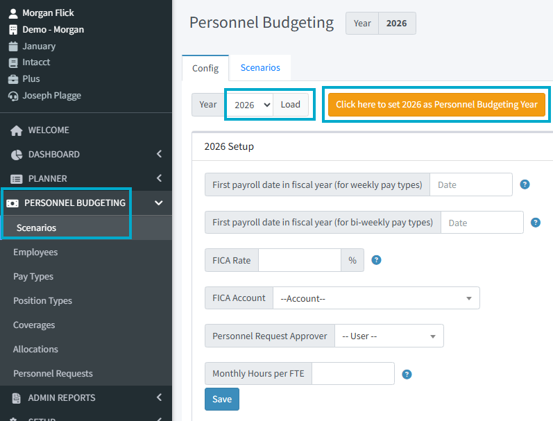 - Go to Personnel Budgeting > Scenarios