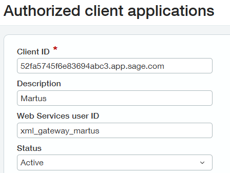 - Client ID = 52fa5745f6e83694abc3.app.sage.com