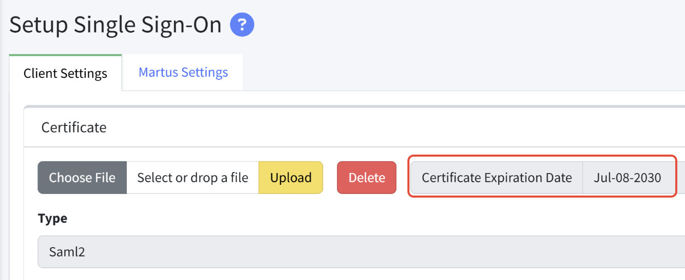 Find the certificate expiration date on the Setup > SSO page.