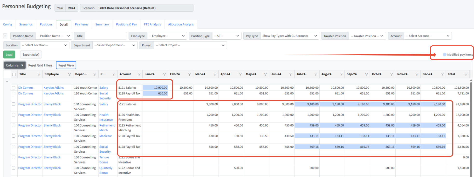 - Currently, allocations are not considered in the Positions and Pay tab.
