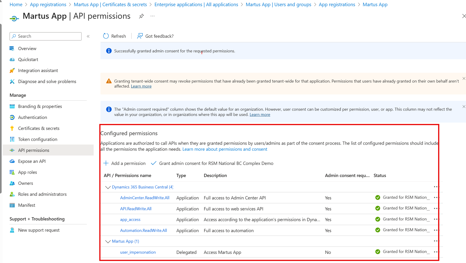 Grant Consent in Microsoft Entra Application Card